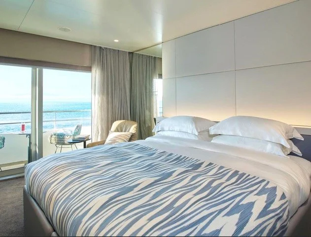 The unique Riverview Suites are located at the back of the ship, affording them floor-to-ceiling windows and an innovative indoor balcony system for endless views at any time of day.